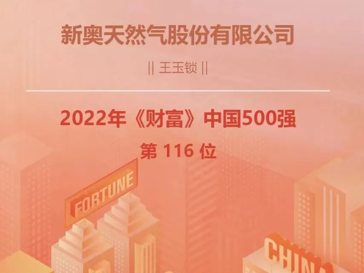 新奥股份入选2022年《财富》中国500强排行榜